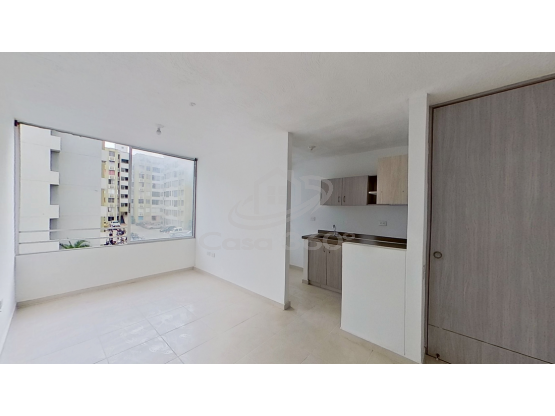 Bonito apartamento de 50 m², ubicado en el piso 3, torre 1, con 2 habitaciones, 1 baño, cocina integral y estudio. Cuenta con ascensor, gas natural y garaje comunal. Pisos en cerámica, estrato 3, 7 años de antigüedad, excelente estado y listo para habitar. No tiene balcón, terraza ni parqueadero privado. Zona tranquila, segura y con fácil acceso a transporte y servicios
